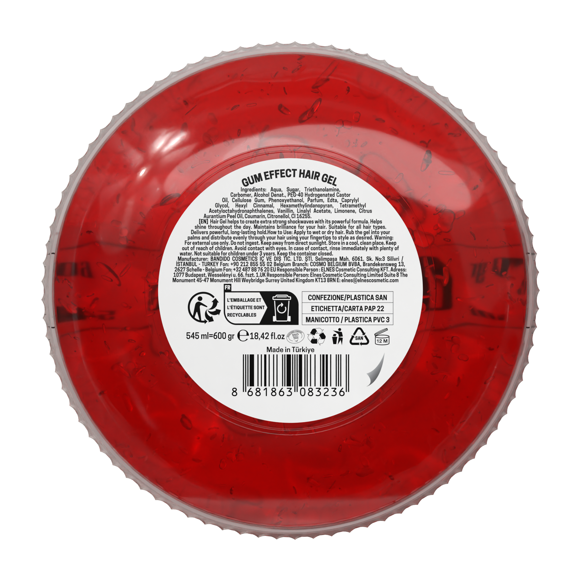 Gomina profesional de fijación ultra fuerte y textura elástica tipo goma, diseñada para esculpir peinados creativos con brillo natural. Su fórmula de alto rendimiento es ideal para uso intensivo en barberías que exigen acabados duraderos y un lavado sin residuos.