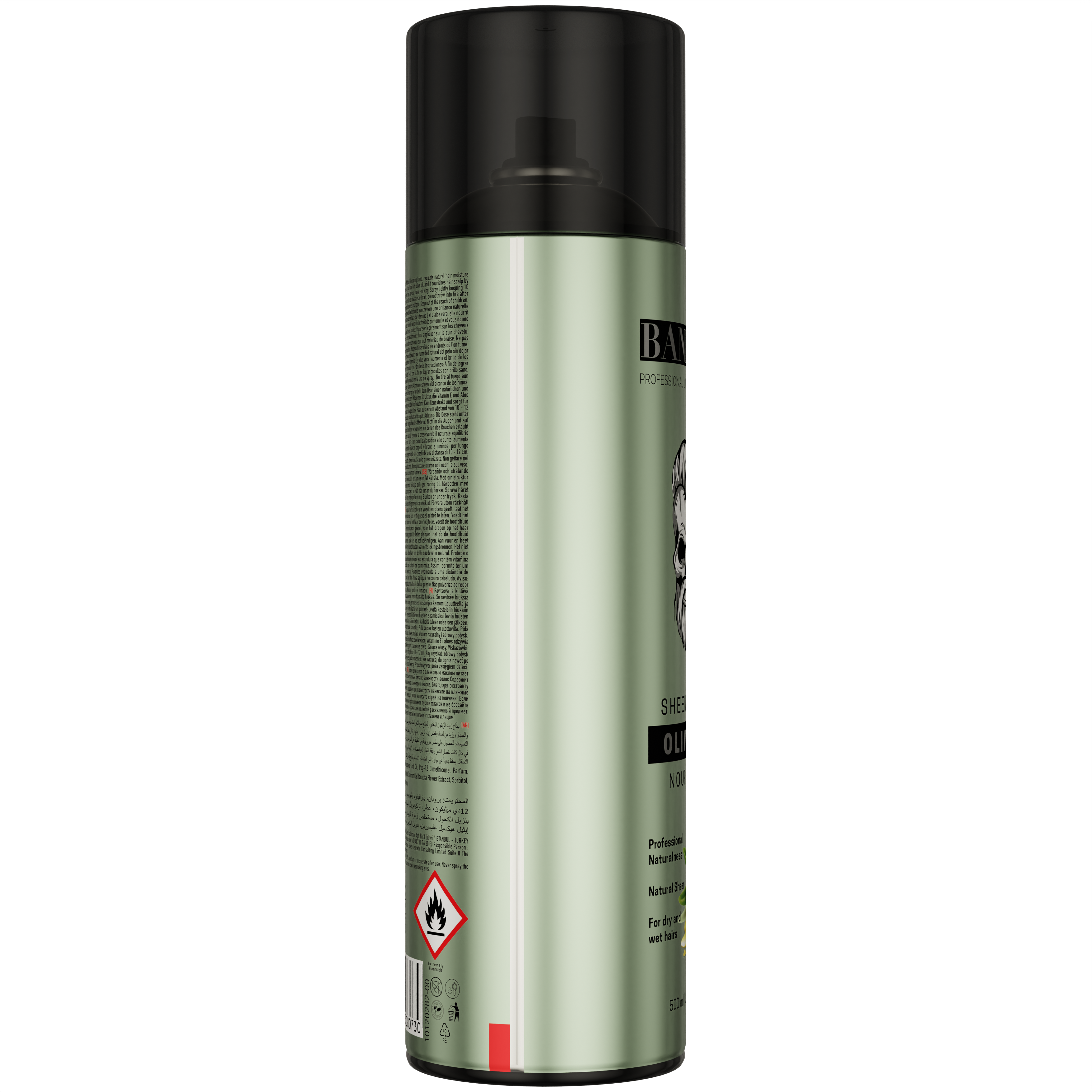 Spray de brillo profesional formulado con aceite de oliva para un acabado radiante y saludable. Ideal para aportar luminosidad instantánea y suavidad en peinados finales, diseñado para el uso intensivo en barberías y peluquerías profesionales.