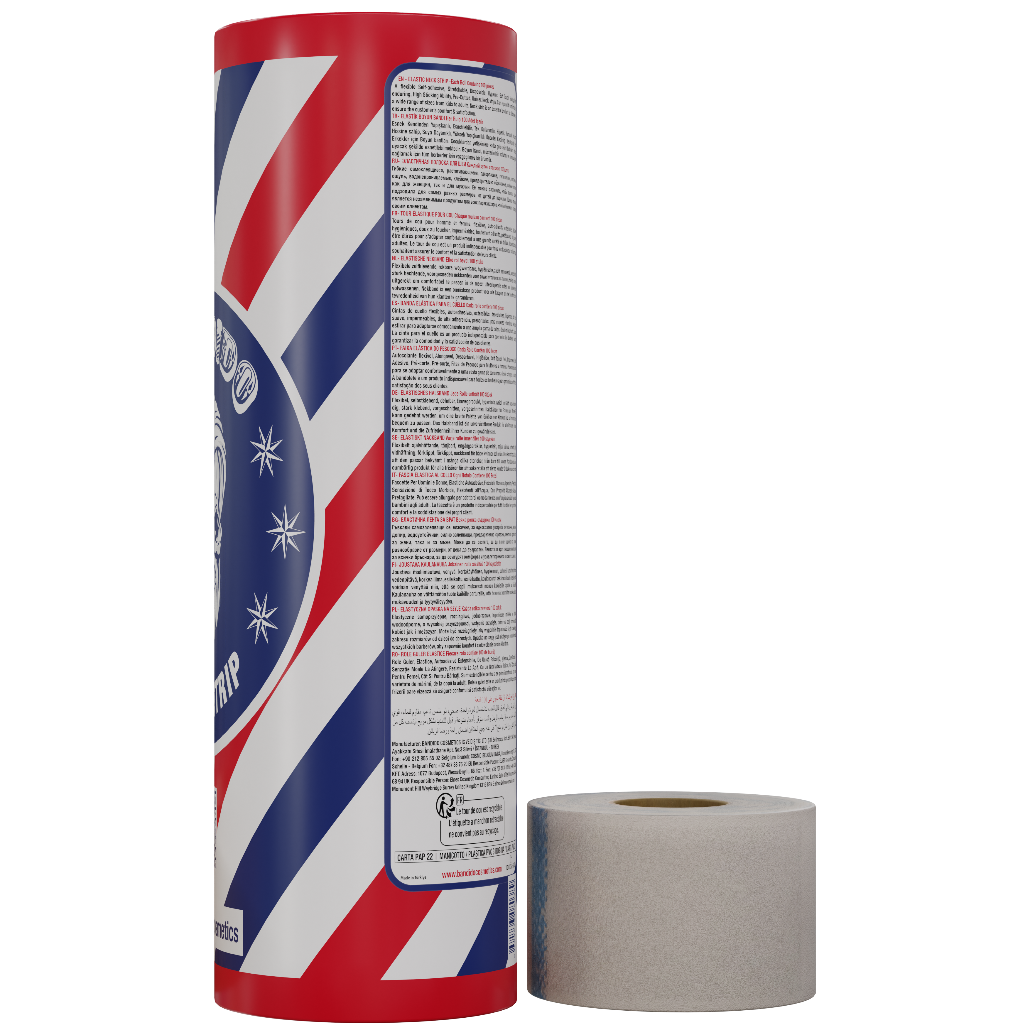 Papel de cuello elástico profesional diseñado para garantizar la máxima higiene en barberías y peluquerías. Su tejido suave, absorbente y con banda adhesiva protege la piel del cliente durante cortes y servicios técnicos intensivos.